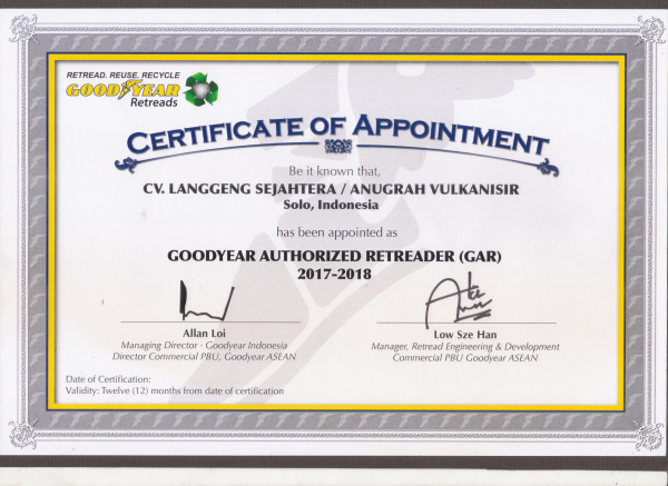 Semua tim kami telah disertifikasi oleh GoodYear agar mutu tetap terjaga.